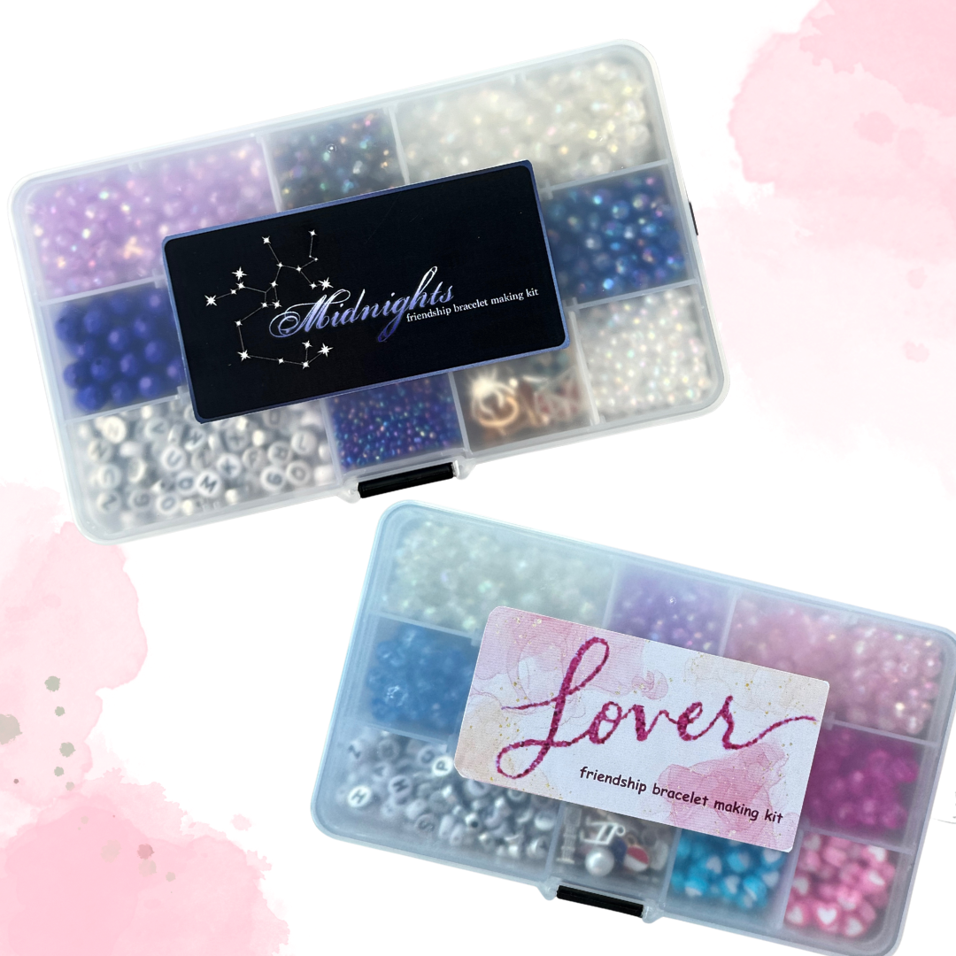 The current collection includes “Reputation”, “Midnights”, “Folkmore” and “Lover” bead and charm kits, check it out!